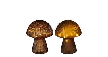 Lamp paddestoel glas bruin 2 ass 20 led battery - h25xd20cm