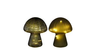 Lamp paddestoel glas groen 2 ass 20 led battery - h25xd20cm