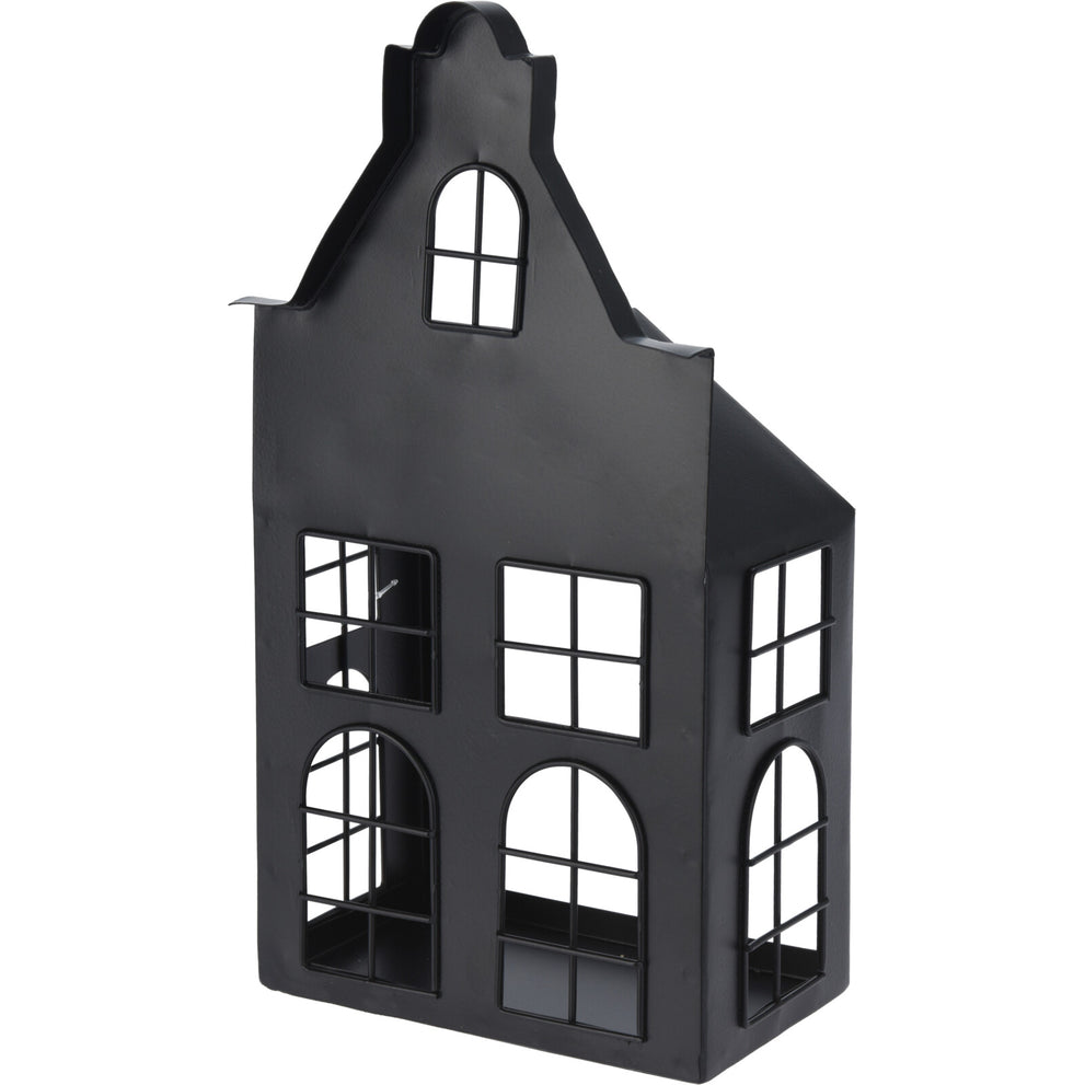 LANTAARN HUIS METAAL 16X9X30CM ZWART