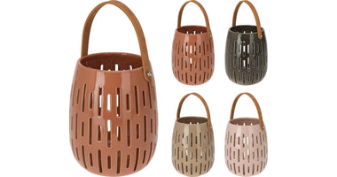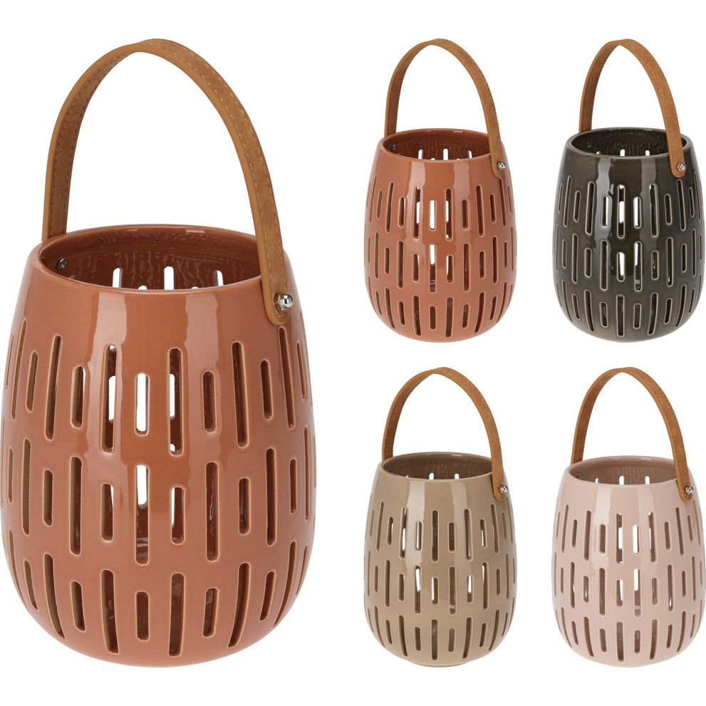 LANTAARN KERAMIEK MET HANDVAT D15,5 H20CM 4 ASSORTIE KLEUR