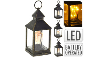 LANTAARN KUNSTSTOF MET LAMP 11X11X23CM 3 ASSORTIE