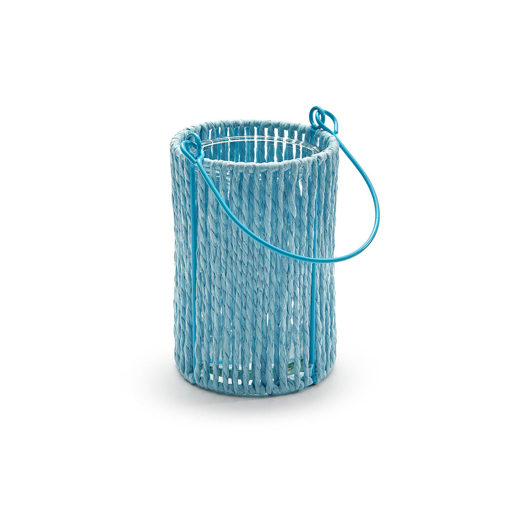 Lantaarn rond 'Lumière' hemelsblauw 16cm