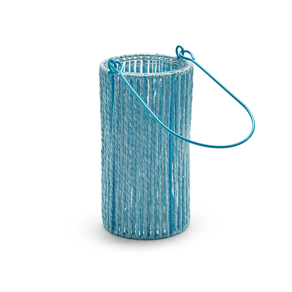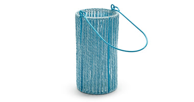 Lantaarn rond 'Lumière' hemelsblauw Ø11x20,5cm