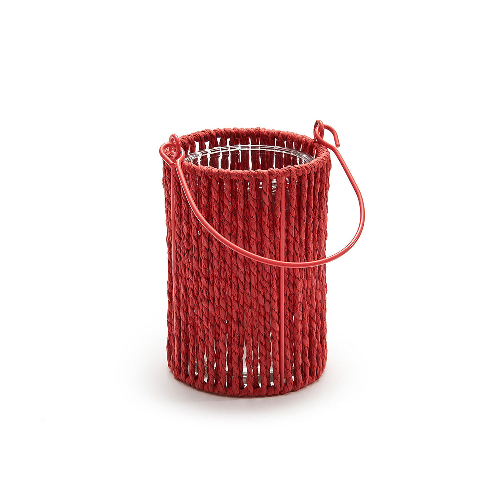Lantaarn rond 'Lumière' koraalrood 16cm