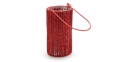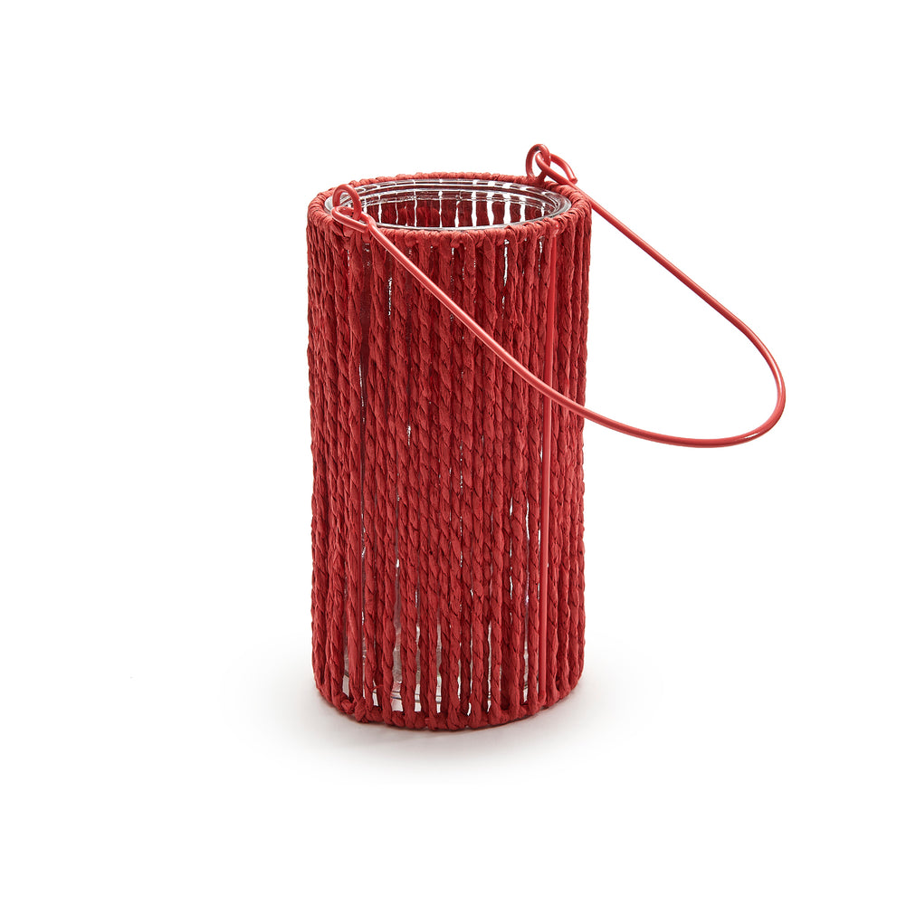 Lantaarn rond 'Lumière' koraalrood Ø11x20,5cm