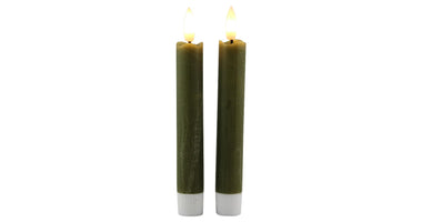 LED dinerkaars 15cm rustiek olijfgroen set/2 met timer (excl. 1xAAA)