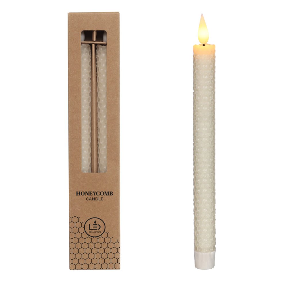 LED honeycomb Candle set/2 Ø2.2 h. 25cm Creme