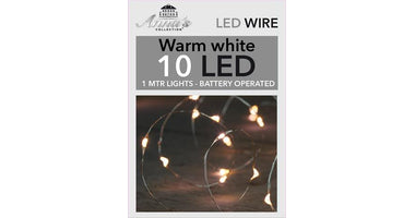 LED INDOOR ZILVERDRAAD 10L/1M LED WARM WIT - INCL 2x KNOOPCELBATTERIJ