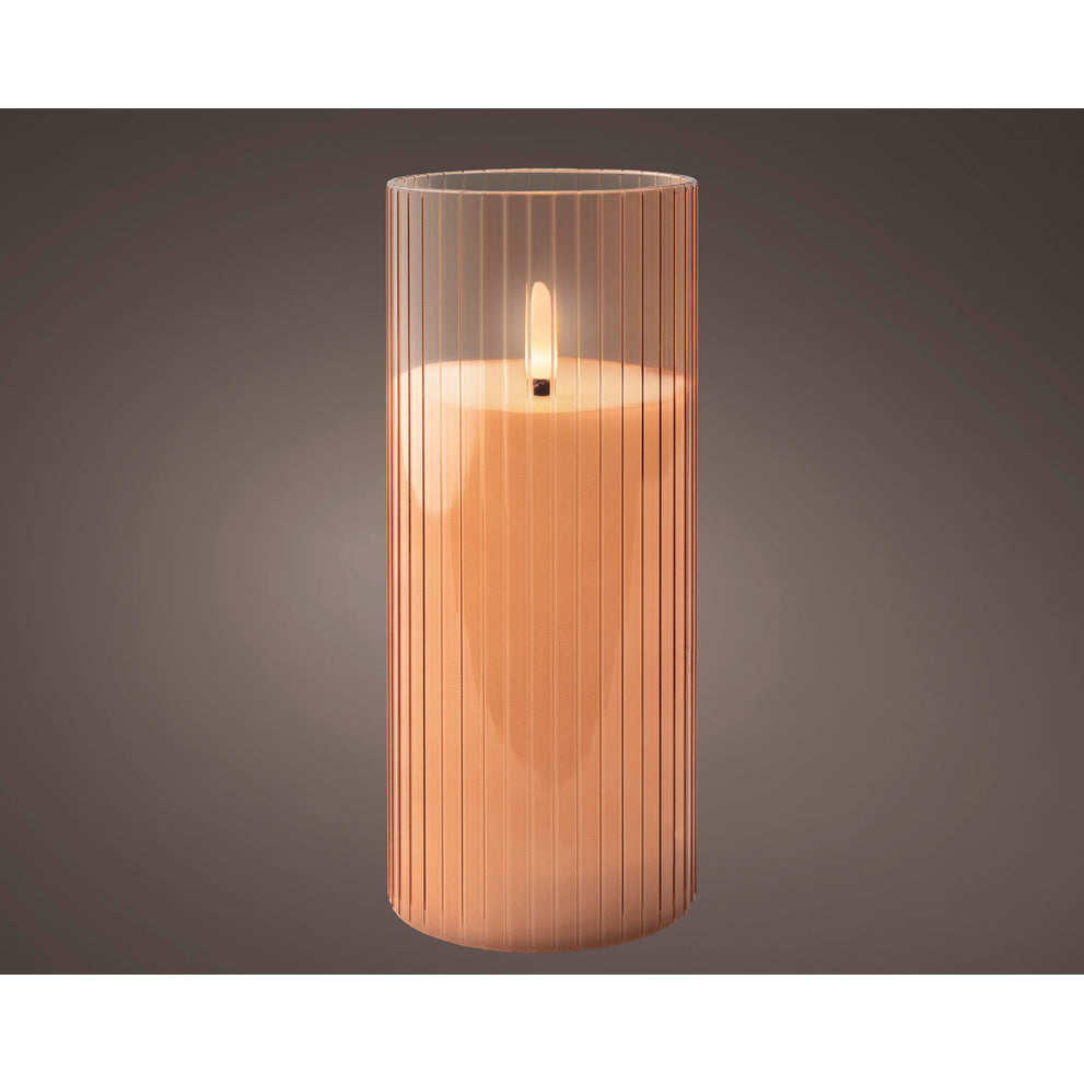 LED kaars glas BO binnen roze/warm wit H17,5 D7,5cm