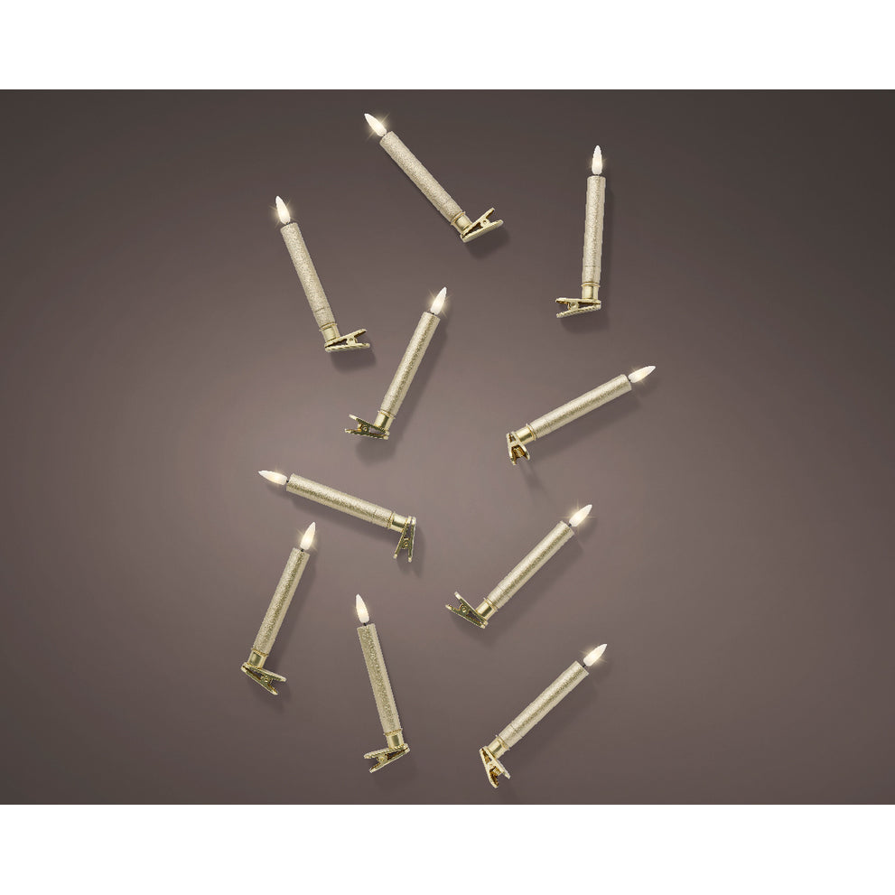 LED kerstboomkaars knijper Goud/warm wit D1,5 H14cm 10st