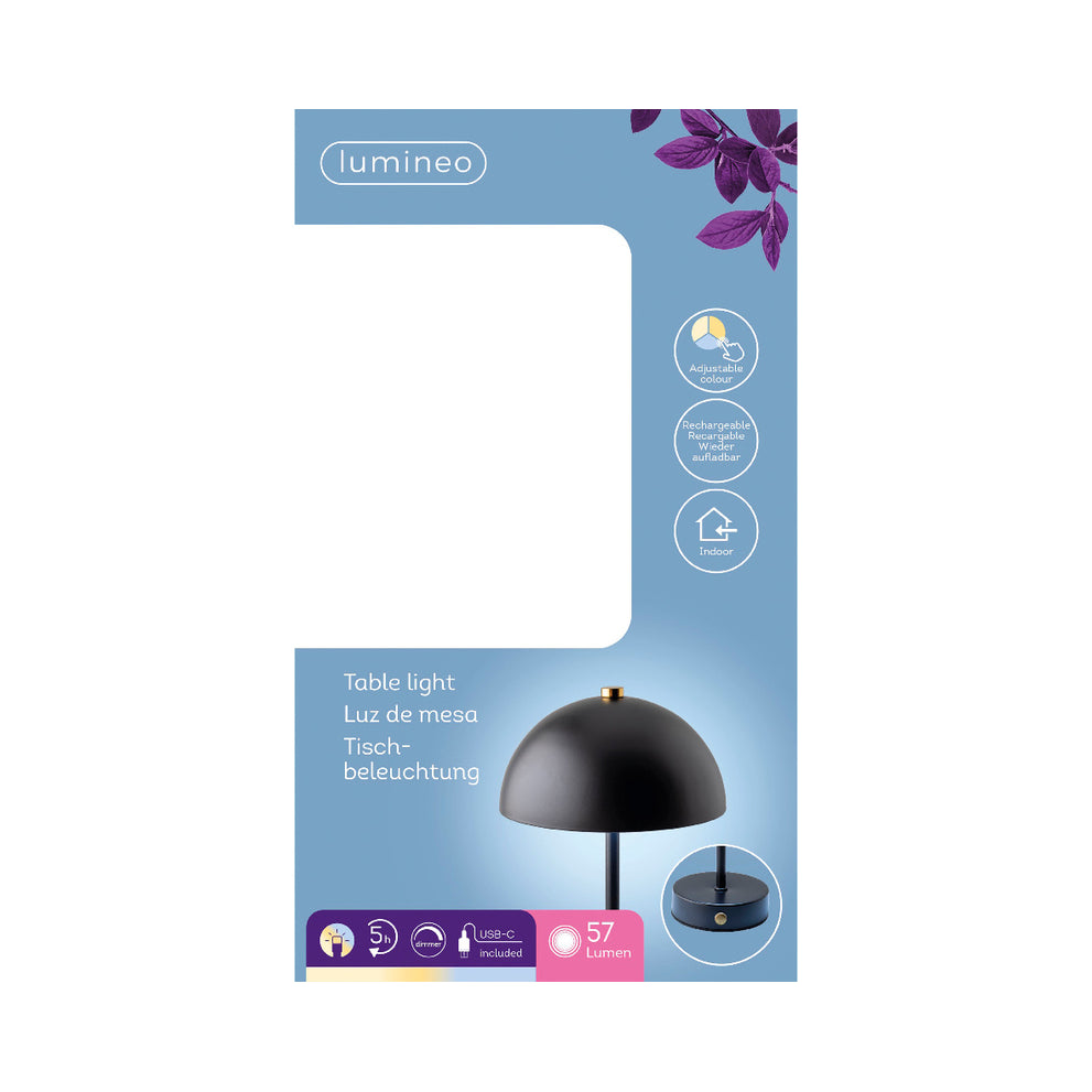 LED oplaadbare lamp metaal binnen zwart/warm wit d15 H25cm