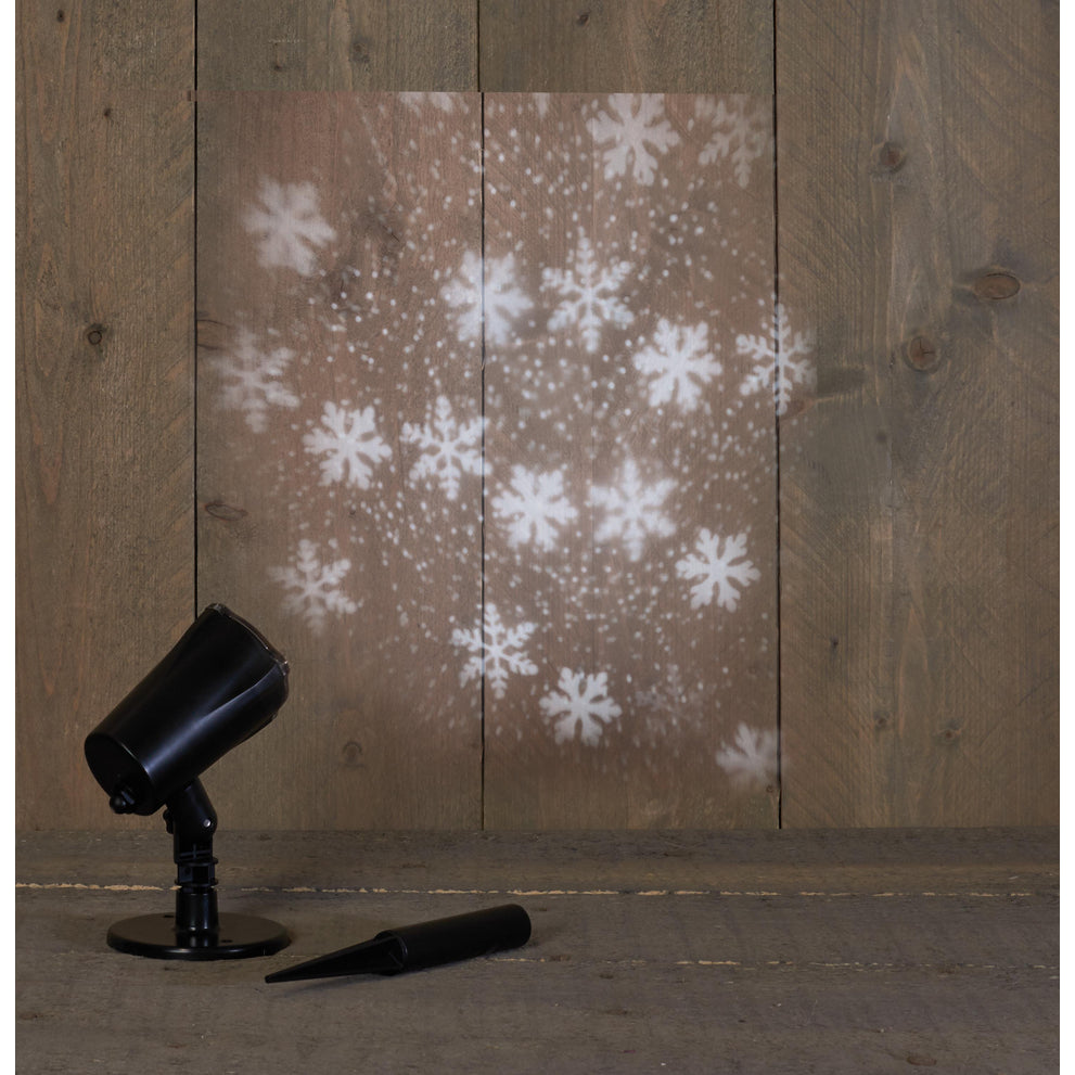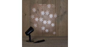 LED OUTDOOR PROJECTOR SNEEUWVLOK LED WIT MET VOETJE EN STEKER / 8/16H TIMER IP44 / 5M AANLOOPSNOER
