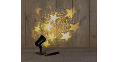 LED OUTDOOR PROJECTOR STER WARM WIT VOETJE EN STEKER / 8/16H TIMER IP44 / 5M AANLOOPSNOER