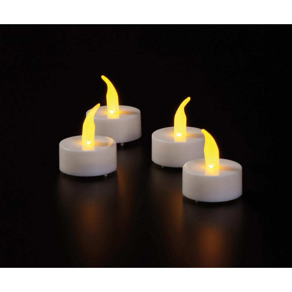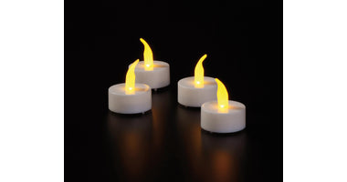 LED THEELICHT 4 STUKS GEEL VLAMEFFECT / 6/18U TIMER/UIT (incl. batterij)