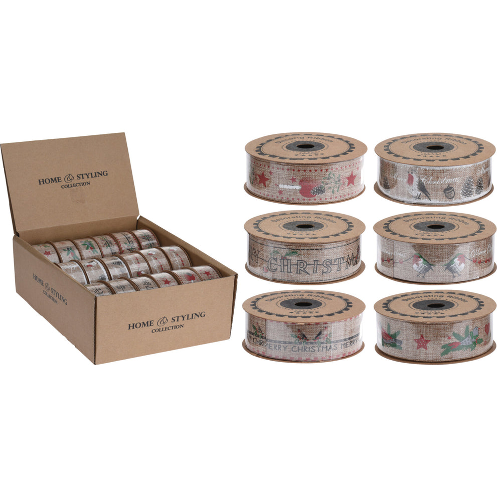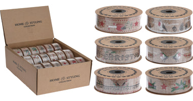 LINT JUTE 2,5X500CM MET KERSTPRINT 6 ASSORTIE