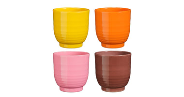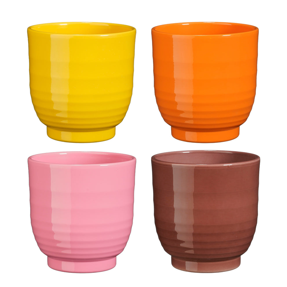 Lisa pot rond geel d.rood roze oranje 4 assorti - h13,5xd13,5cm