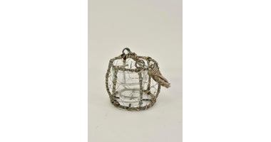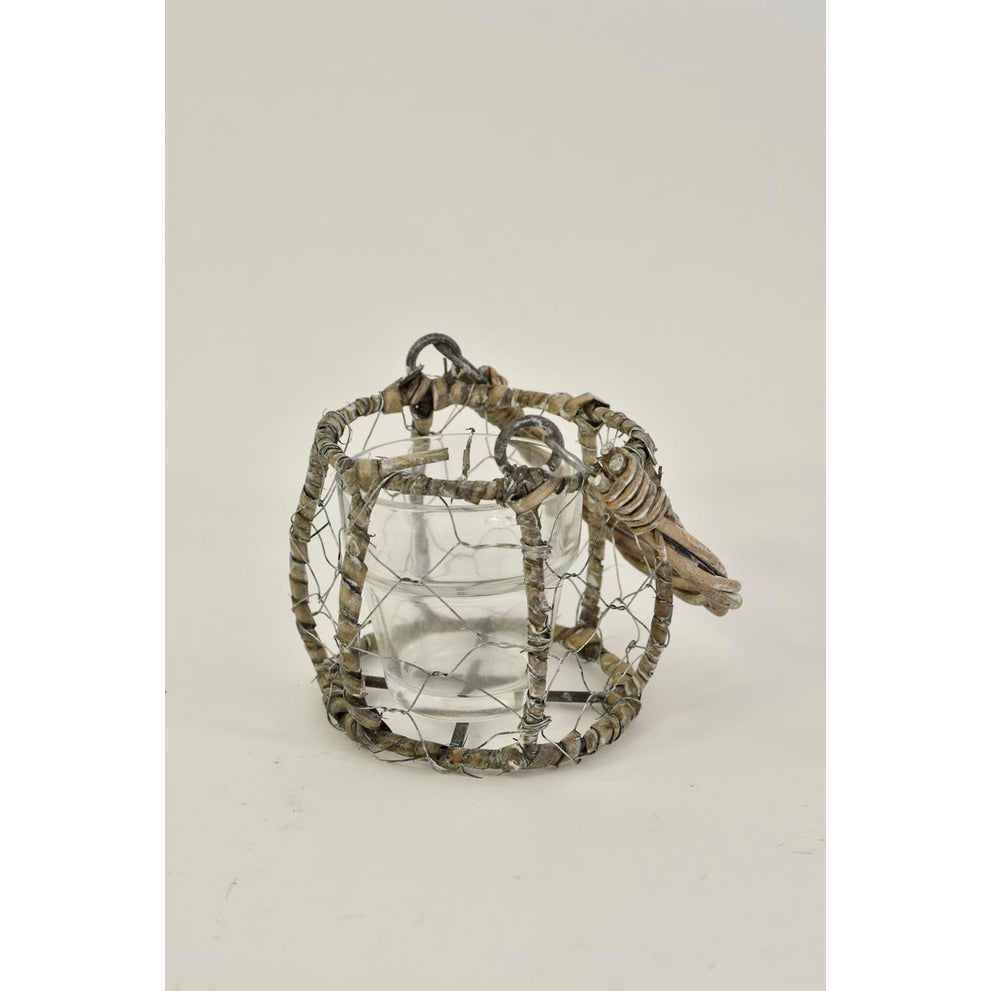 Mand gaas met waxineglas en riet hengsel grijs D9 H8/16cm