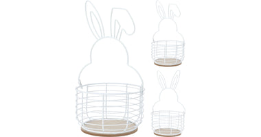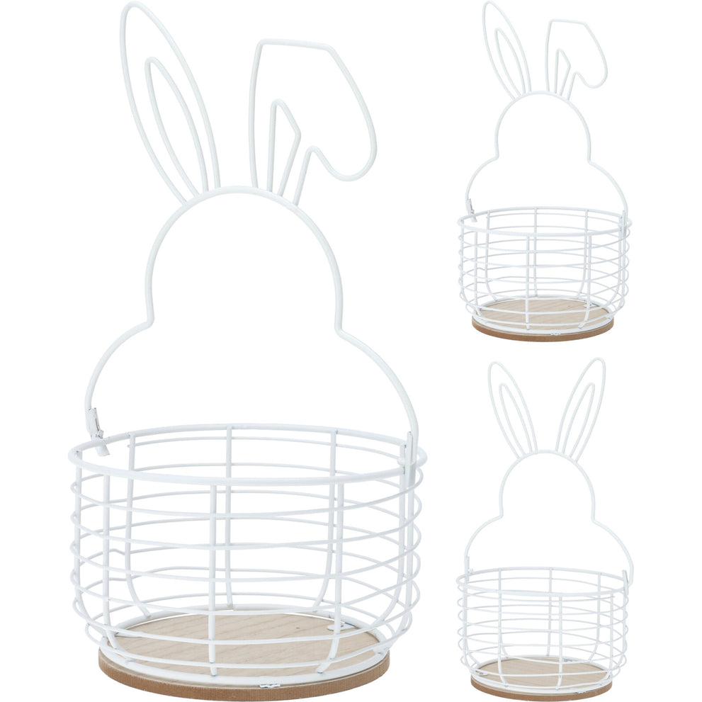 MAND METAAL KONIJN ROND WIT D17 H32CM 2 ASSORTIE