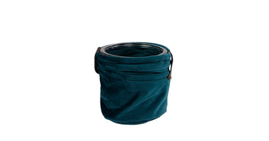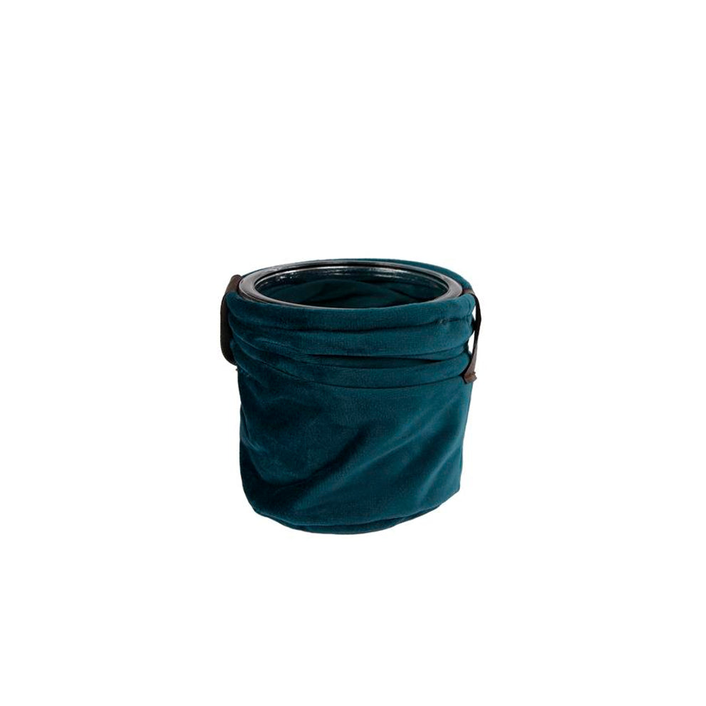 Mand-zak 'textiel' leer-detail petrol dia10x10cm (met glas)