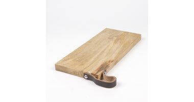 Mango chopping board with leather handle 38x16x2cm