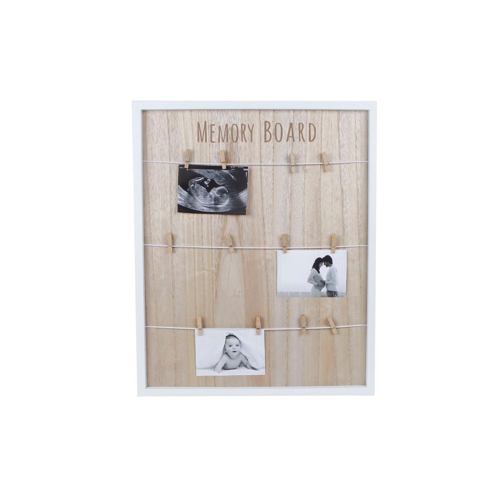 Memobord "Clip" wit/naturel hout 55x45x2cm