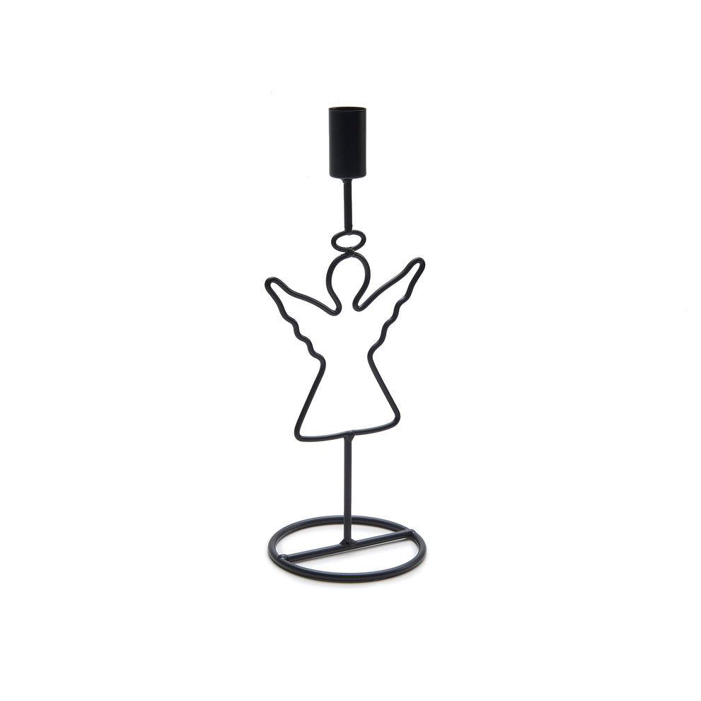 Metal angel candle holder 28cm black