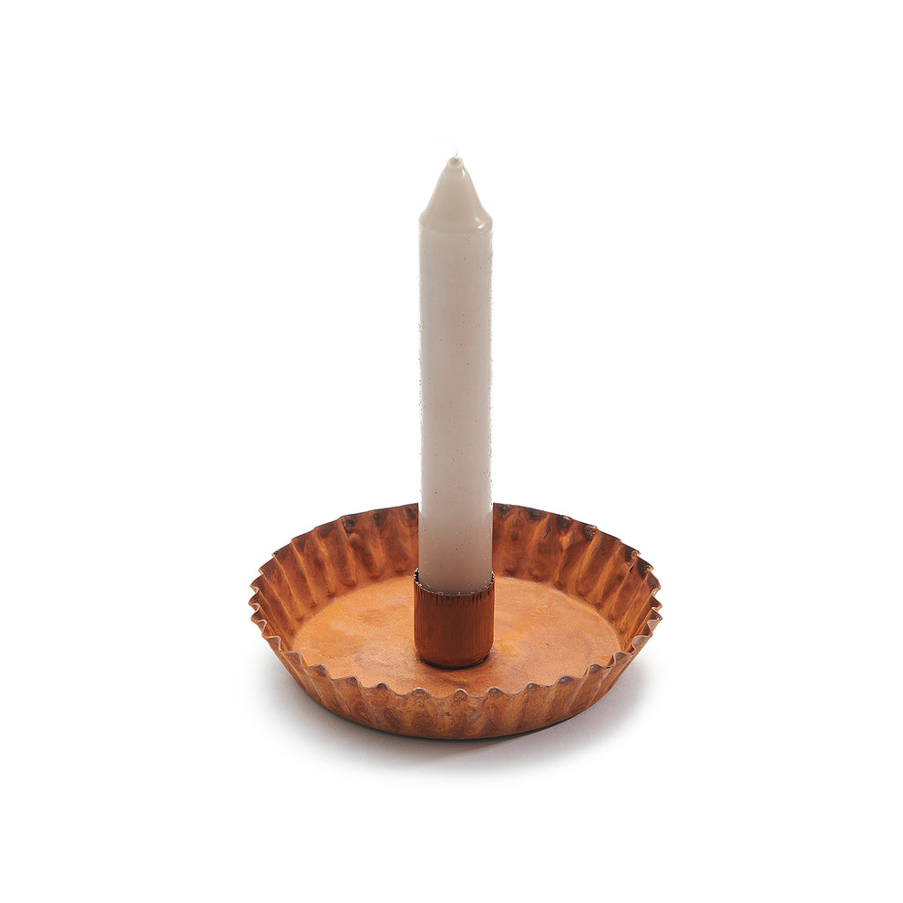 Metal candle holder, wavy Ø11,5x2cm rusty