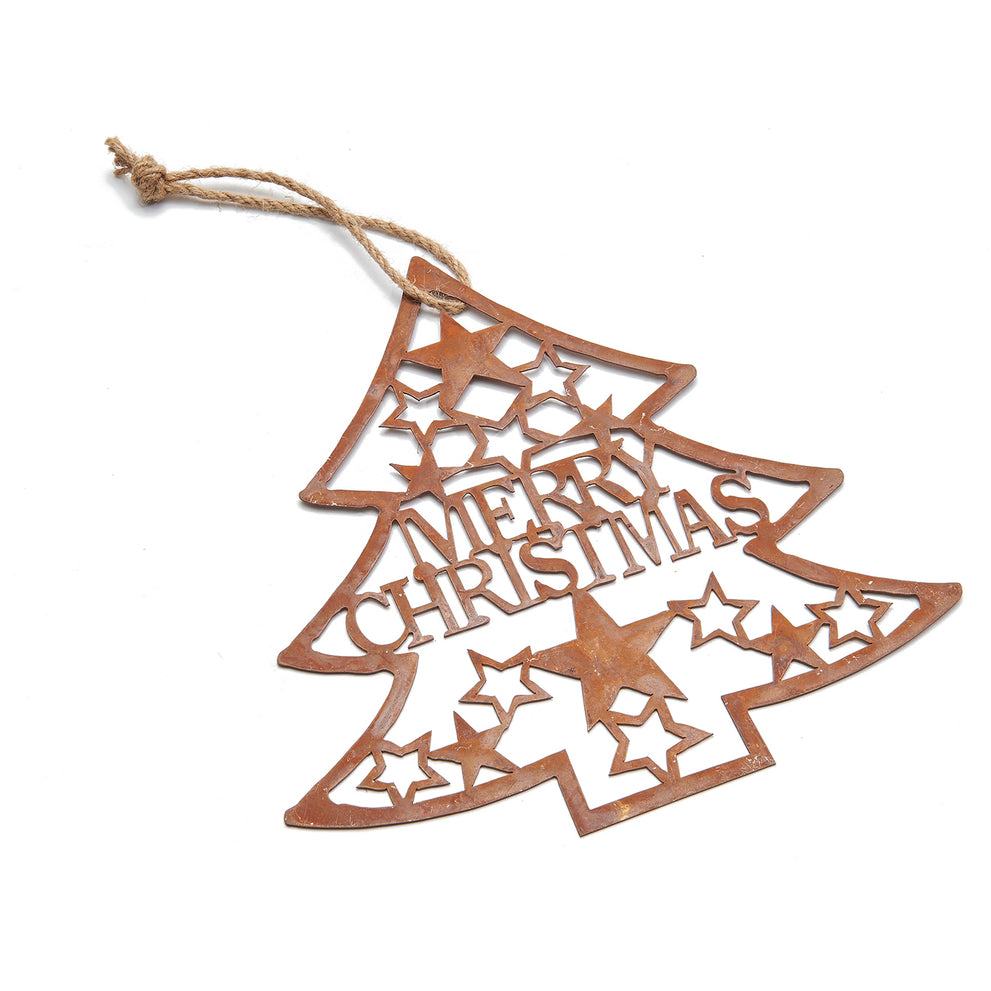 Metal christmas tree hanger 20x20cm rusty