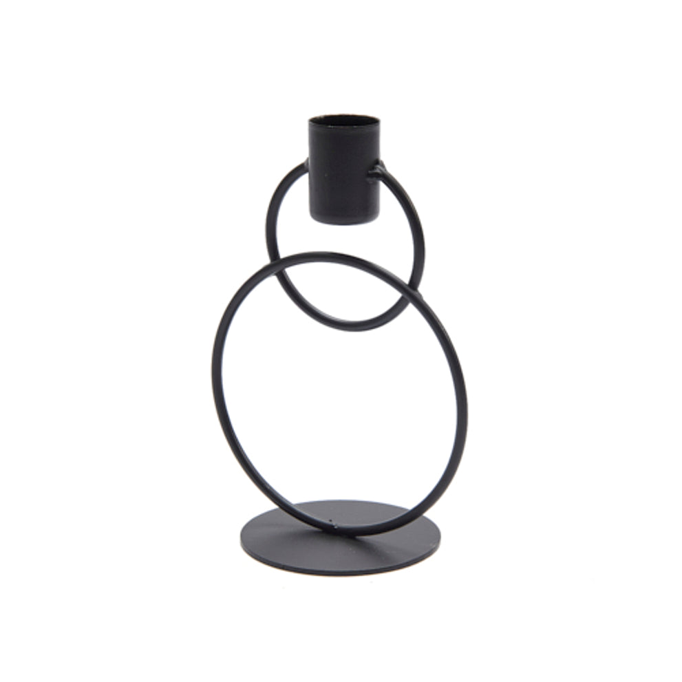 Metal double ring candle holder 15cm black