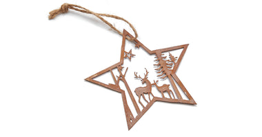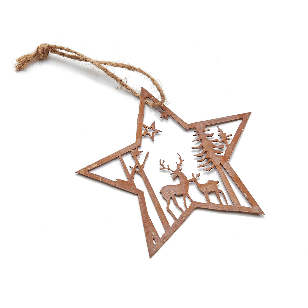 Metal star + landscape hanger 10,5cm rusty