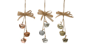 Metalen bellen aan touw 3 kleuren assortie 3,5x8x14cm
