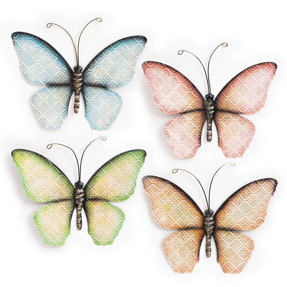 METALEN VLINDER PASTEL 30X21CM 4 ASSORTIE