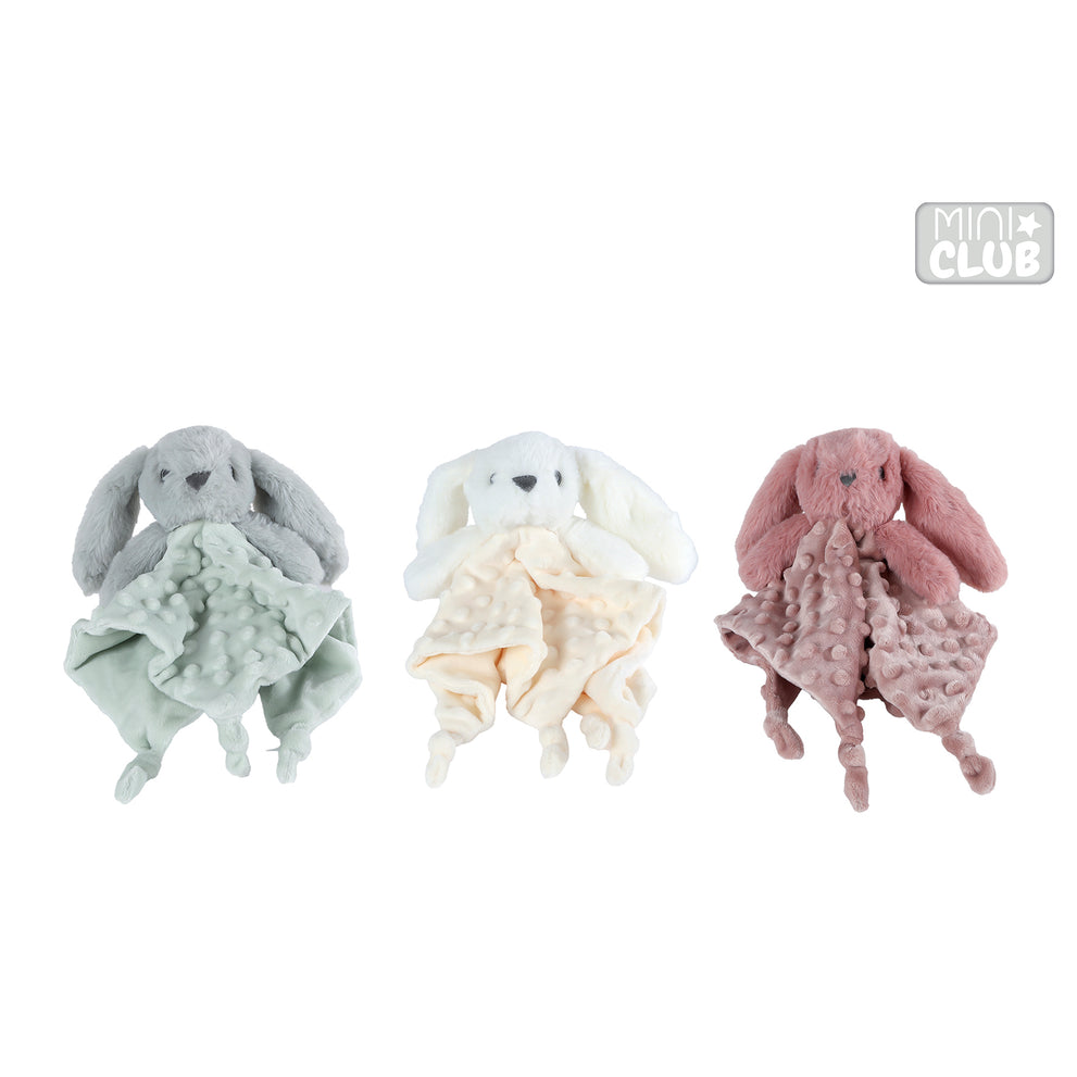 Mini Club knuffeldoekje konijn structuur pluche 3 assortie 30cm