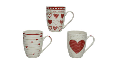 Mok porselein ''love'' 3 assortie motief 8,2x5,5x10,5cm