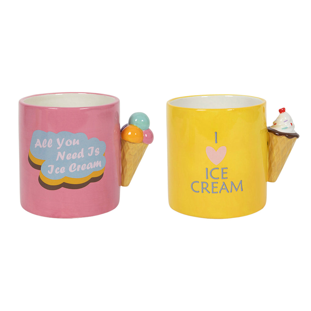 Mok tekst en ijsjes oor 13x10x10.4cm 500ml 2 assortie