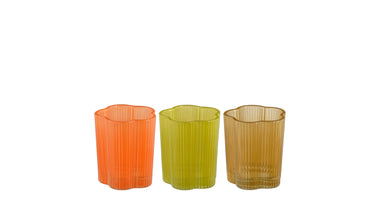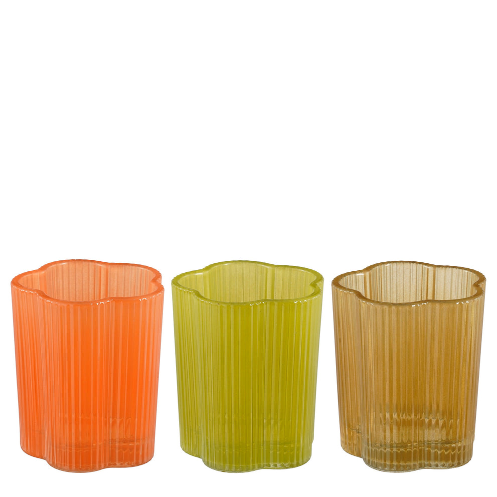 Mondy theelicht houder bruin lime oranje 3 assorti - h8,5xd7cm