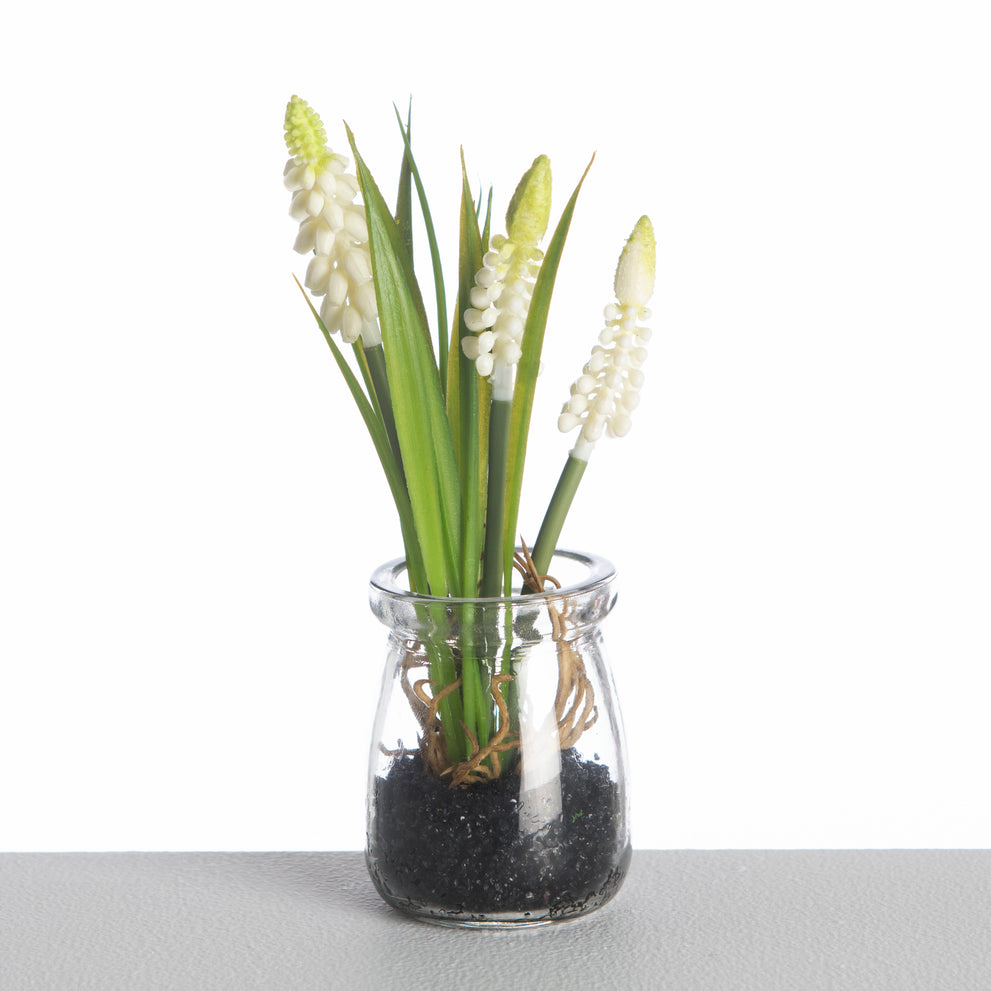Muscari in Glass Pot L18cm White