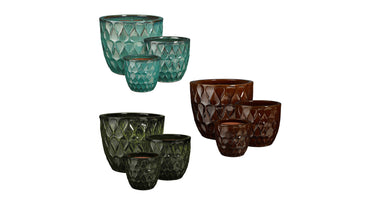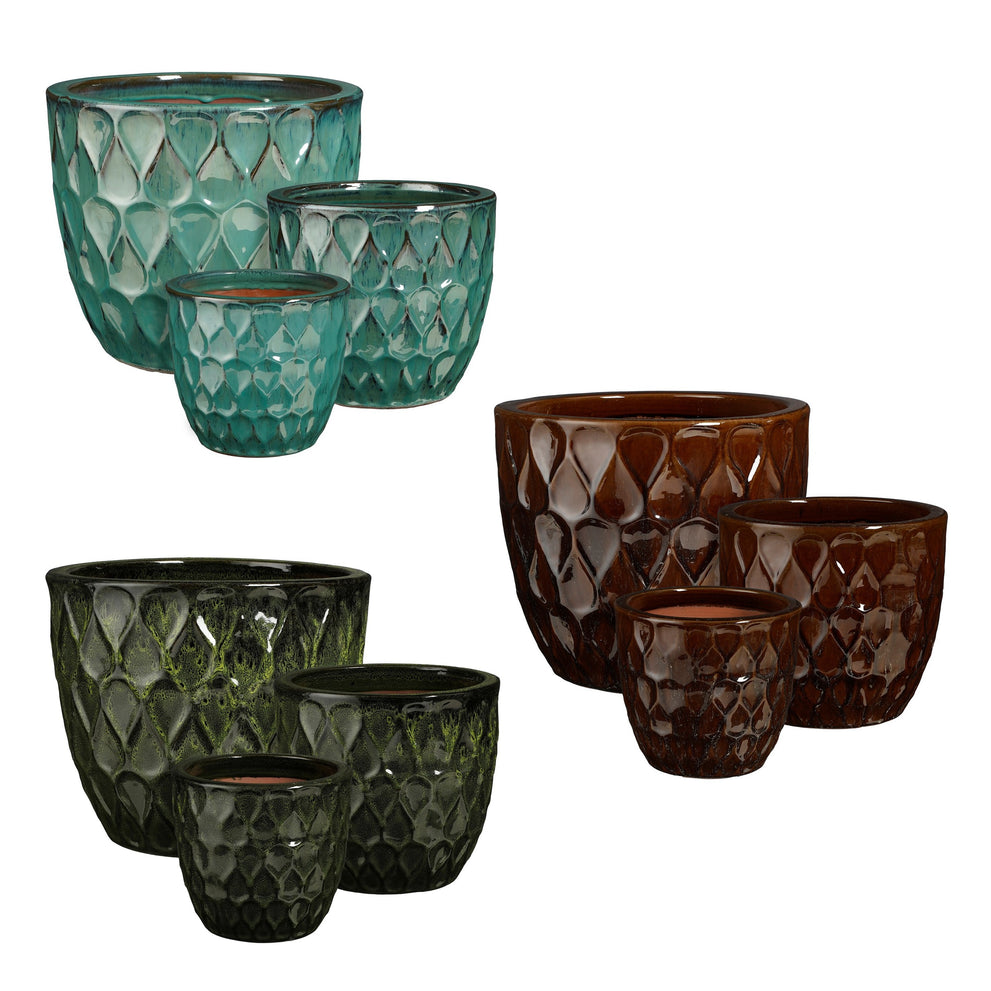 Nevis pot rond d.groen bruin turkoois assorti h32xd37cm