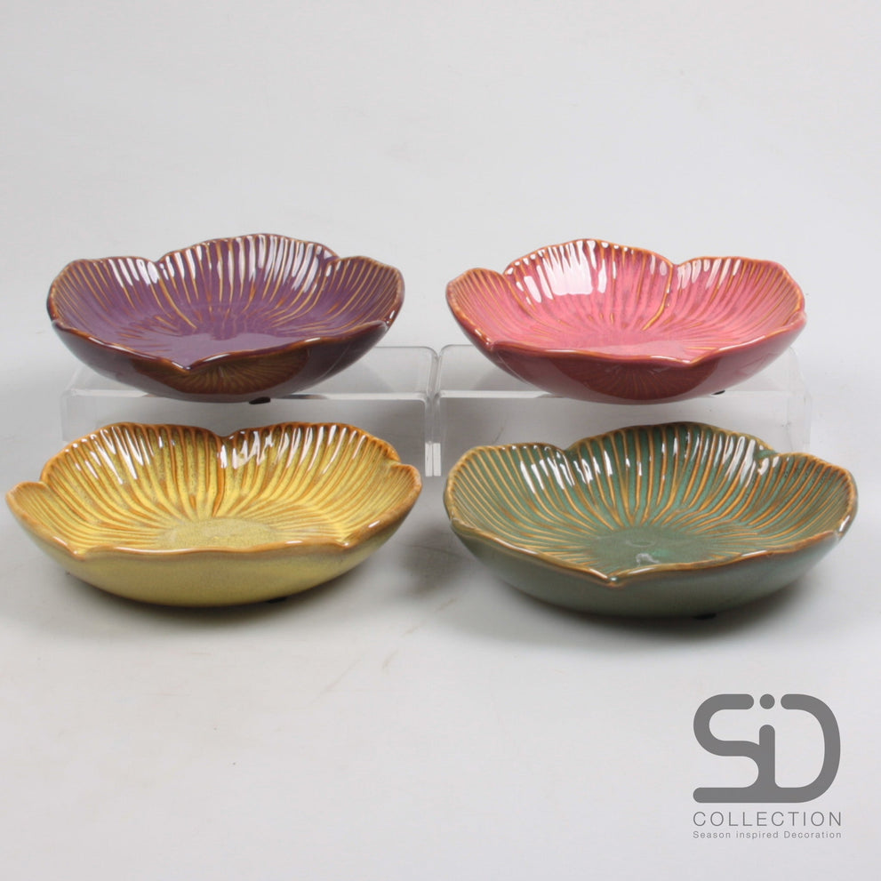 ONDERBORD M FLOWER KERAMIEK 4 ASSORTIE 15X15X3 CM