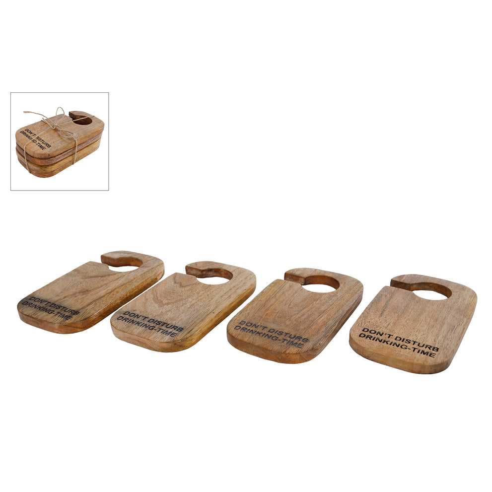Onderzetter "Drinking Time" naturel set/4 mango 16x8,5x0,8cm