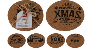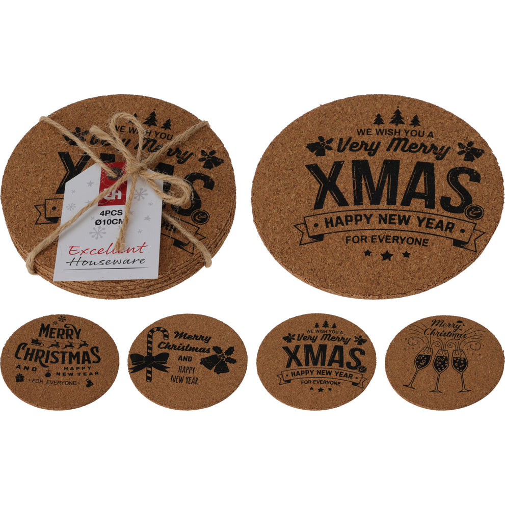 ONDERZETTER KURK SET VAN 4 STUKS DIA 10CM - 4 ASSORTIE DESSIN