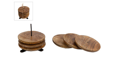 Onderzetters mango op pin-houder 6 stuks dia10cm donker/lichtbruin