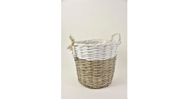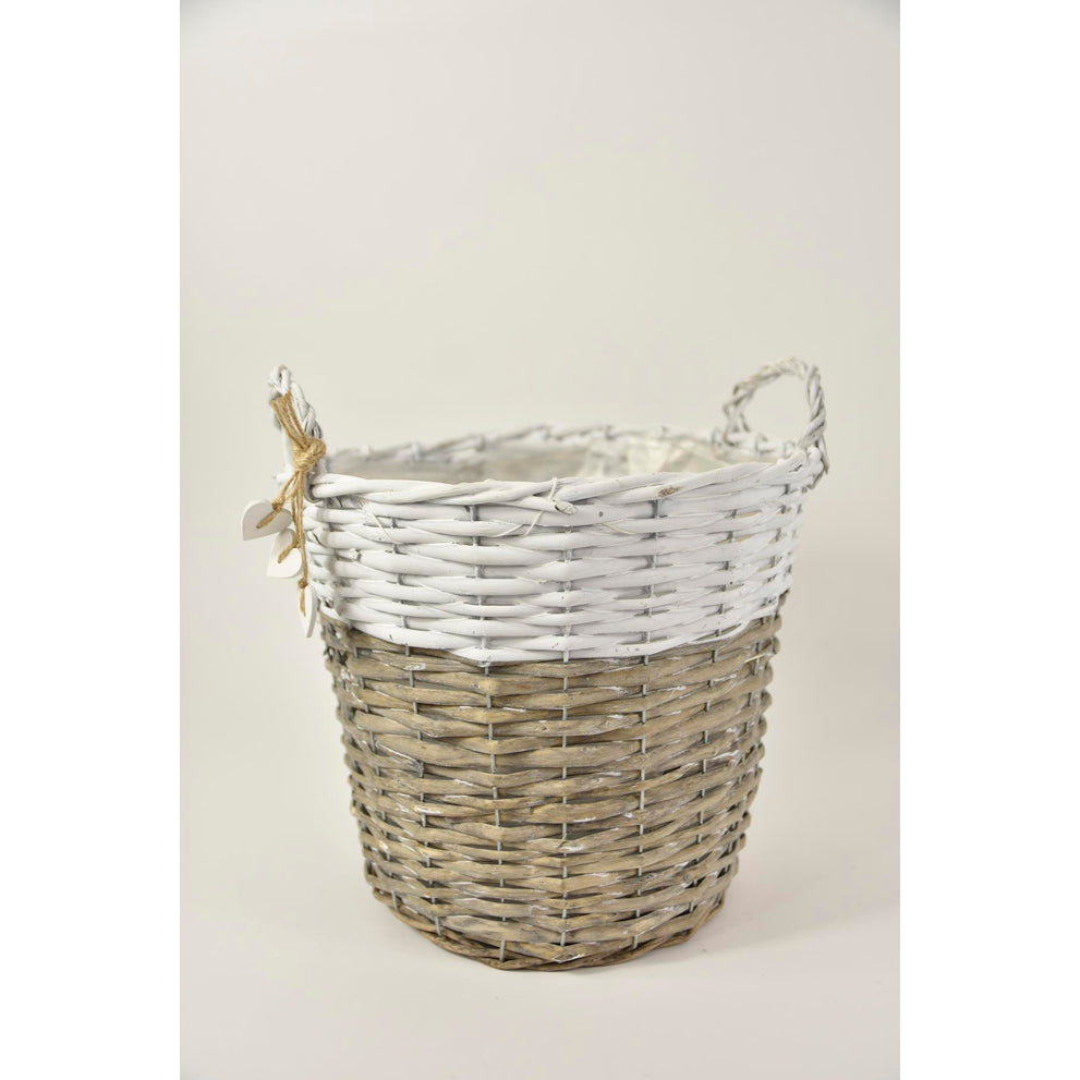 Oorpot grijs/wit met hartjes hanger ''L'' D28 H24cm