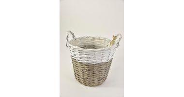 Oorpot grijs/wit met hartjes hanger ''M'' D25 H21cm