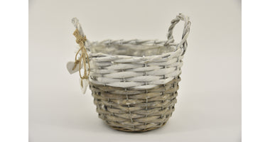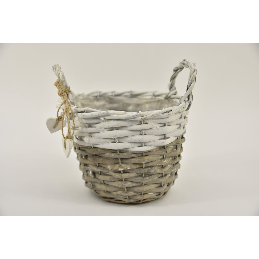Oorpot grijs/wit met hartjes hanger ''S'' D18 H16cm