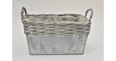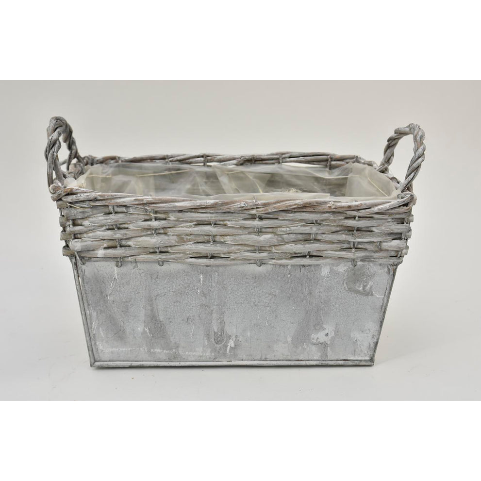 Oorpot zink/riet rechthoek 30x20x15/21cm grijs