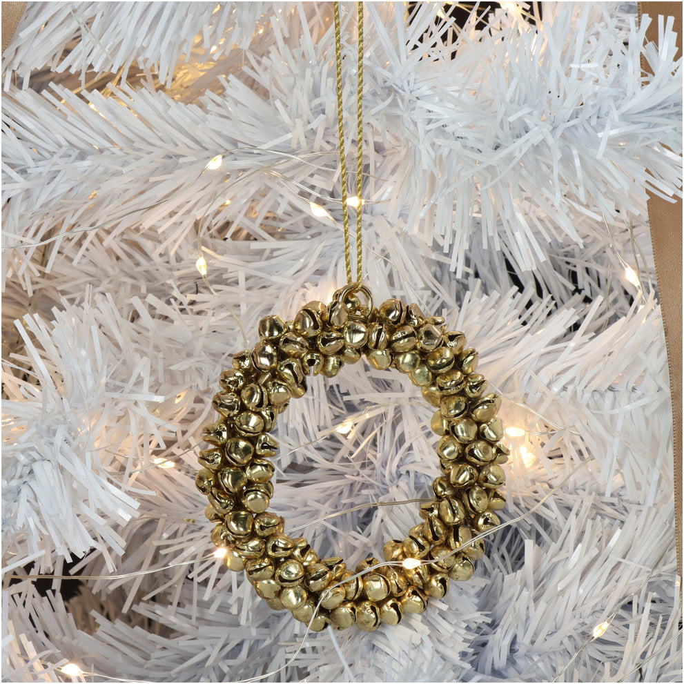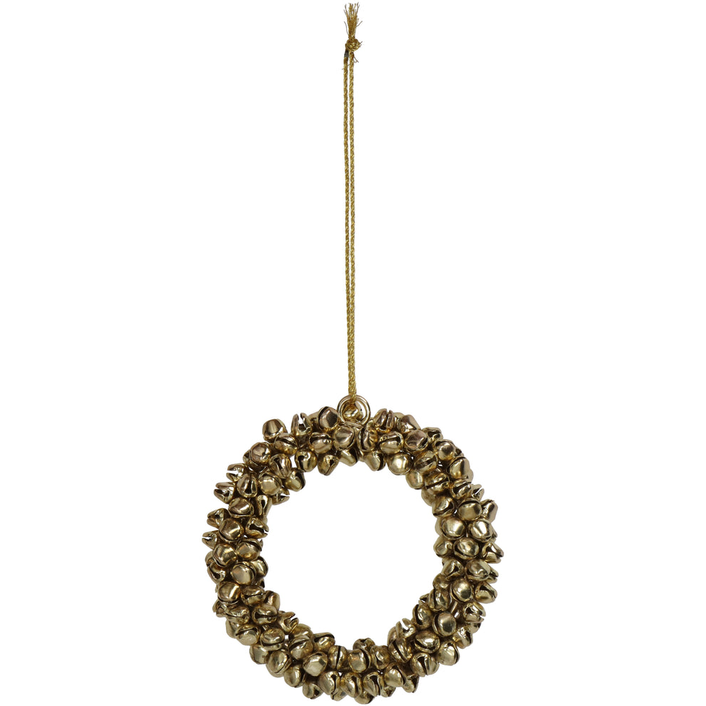 Ornament Bells Wreath Metal Gold 9cm