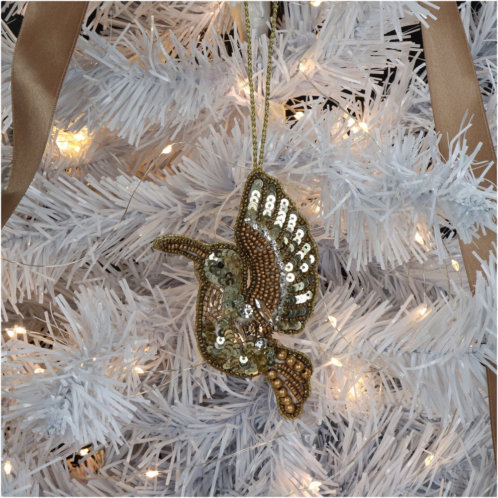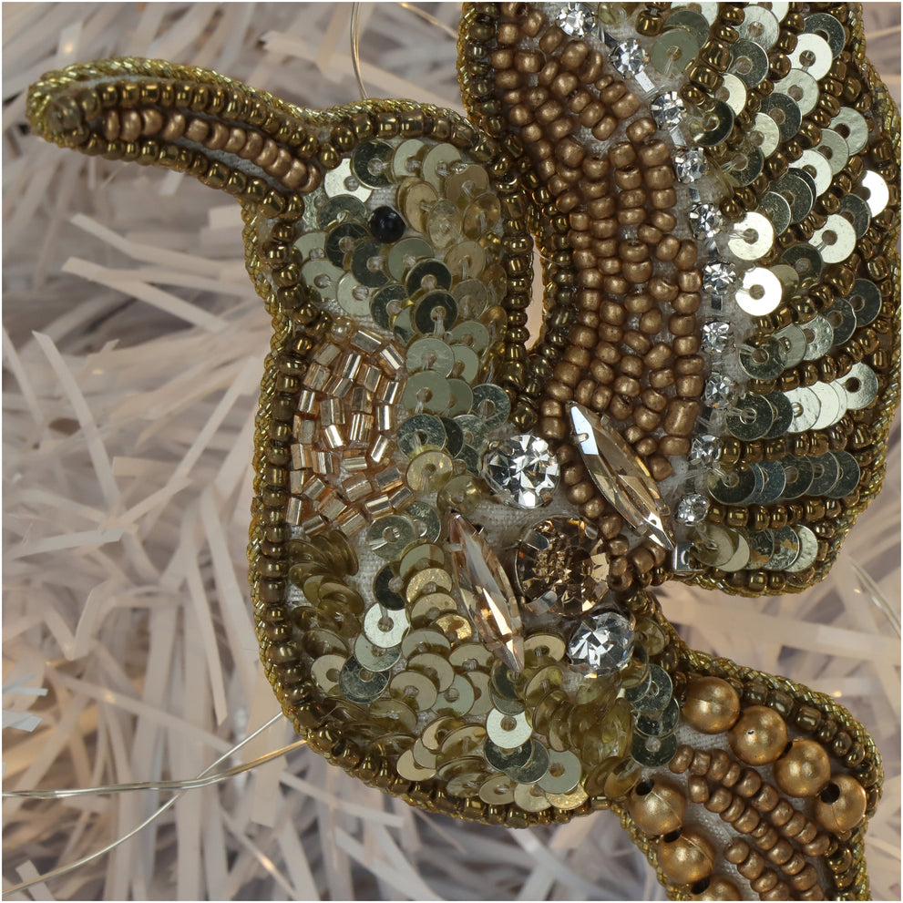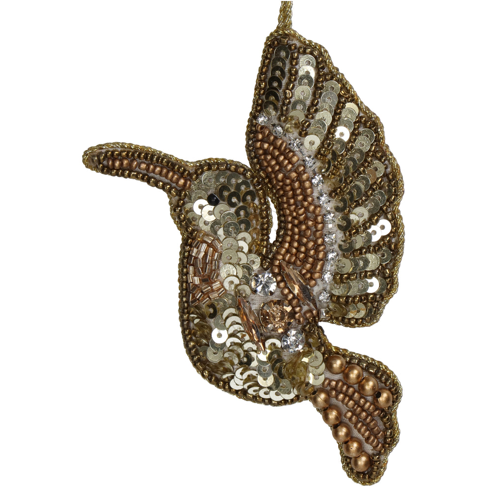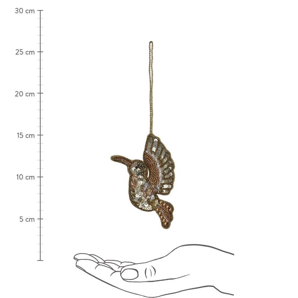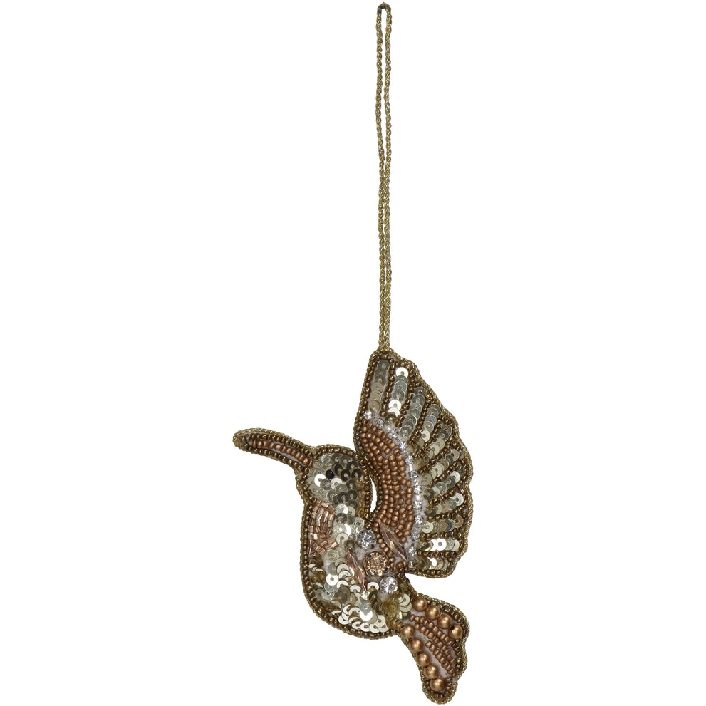 Ornament Bird Beads Gold 11.5cm