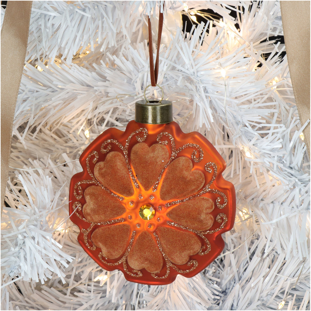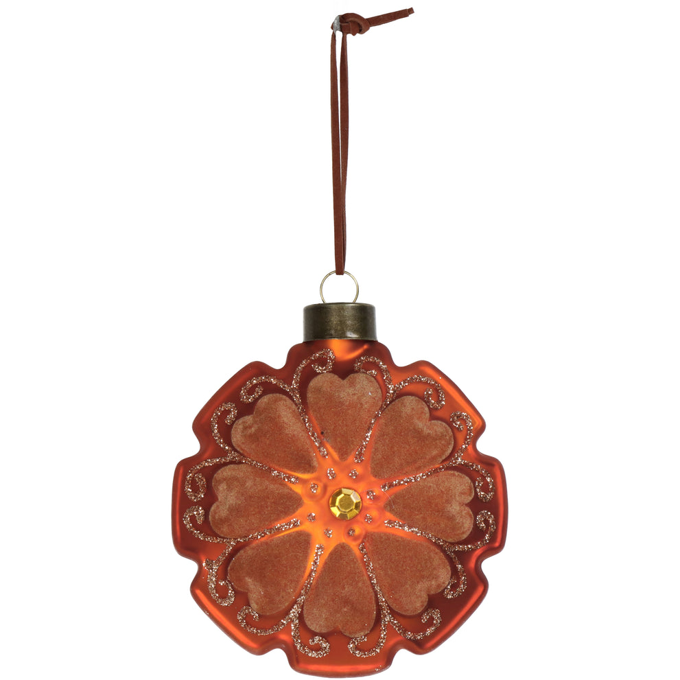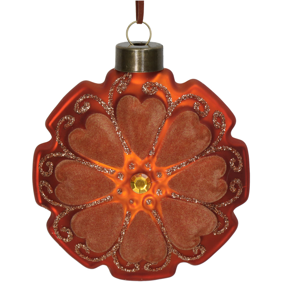 Ornament Disk Flower Velvet Terra 10cm