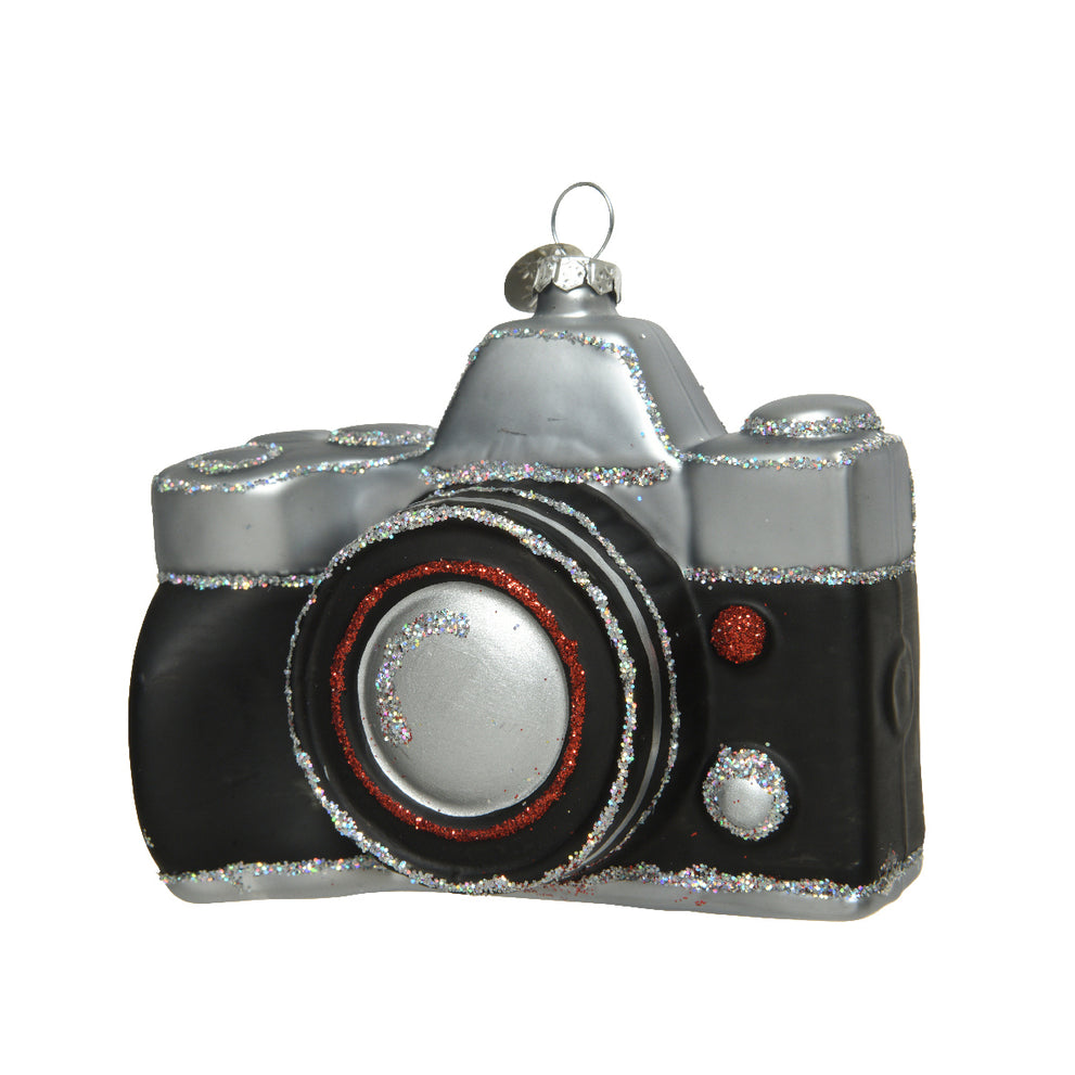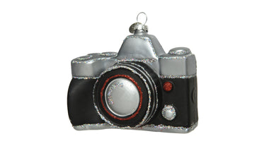 Ornament glas - Fotocamera - glitter - L4.9-W10-H9.3cm - zwart
